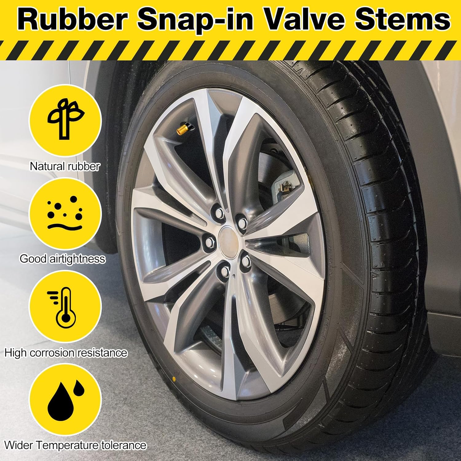 Features: You can prepare rubber valve stems for your backup or send them to your friends, family members, girlfriend or boyfriend, relatives, colleagues who are car owners, bringing lots of convenience to them and improving your relationship. These snap in valve stems are of reliable quality, easy to use, with a wide range of use, functional car replacement parts, able to bring convenience to technical personnel, car owners and more. Specifications: Material: brass and ozone resistant rubber Color: black Size: approx. 0.7 x 1.7 inches Package includes: 300 x Rubber snap in tire valve stems Notes: Manual measurement, please allow slight errors on size. The color may exist a slight difference due to different screen displays. Remember to replace the valve stem when changing a tire, to ensure there is nothing wrong about the tire replacement process. Please check the model and compatibility information carefully before ordering. Swallowing risk may exist, please stay away from little kids